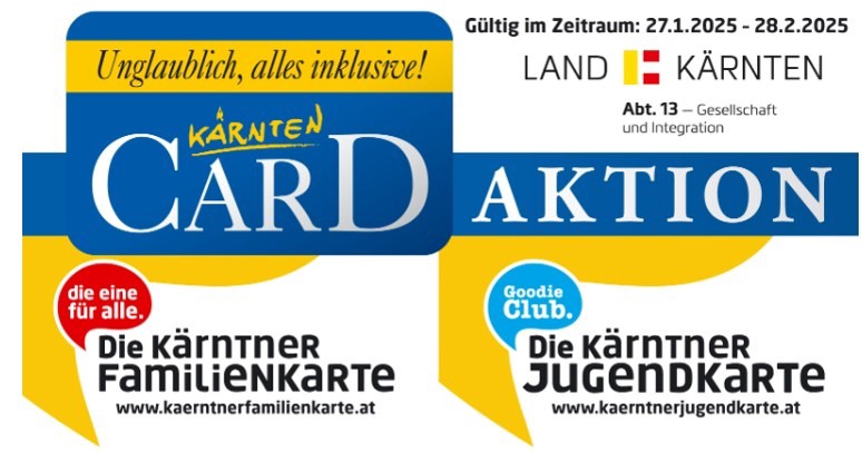 Das Land Kärnten unterstützt alle Besitzer:innen der Kärntner Familienkarte, Kärntner Jugendkarte und auch wieder Senior:innen und Studierende mit niedrigen Einkommen (Hauptwohnsitz Kärnten) sowie Klient:innen mit Behinderung im Bereich Assistenz-Leistungen beim